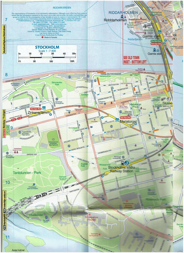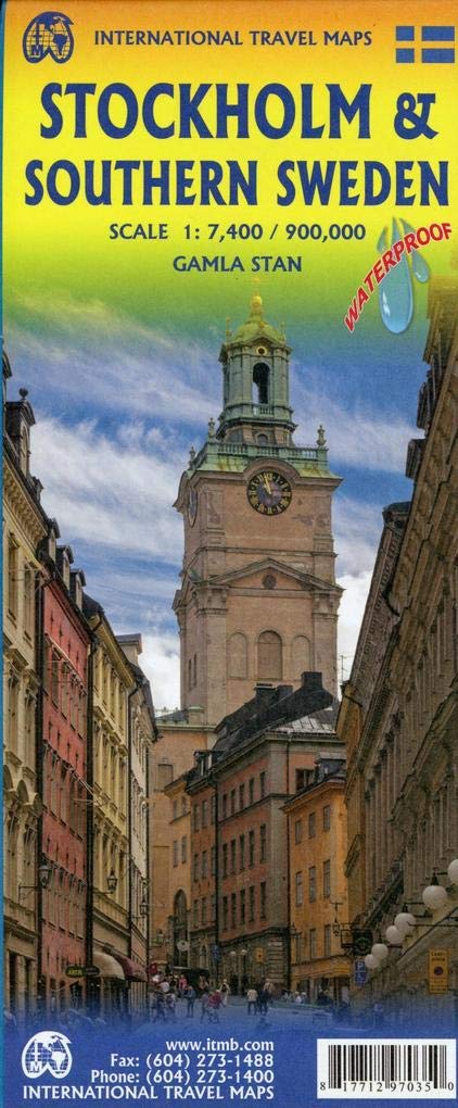 This is both a second edition version of Stockholm itself, combined with a detailed map of southern Sweden, and thus a new map for ITMB. The city itself is interesting, and fills side one. The central railway station forms the western edge of the Centralen (or centre), but it is the more southerly Gamla Stan (or old town) that captivates visitors with its narrow streets and numerous hotels. Stockholm has an excellent rapid transit network joining the central areas to the more outlying ones, and a series of ferry docks joining points in the harbour area and beyond, all of which are shown clearly. The new part of the map is the second side a beautiful map of the southern half of Sweden, from its junctions with Denmark north to the Norwegian border and northeasterly to Stockholm and up the coast well past Uppsala to Ostersund and Sundsvall. This makes the map doubly useful to the end user in that it includes that portion of the country most likely to be visited as well as serving the user well during a stay in Stockholm itself.