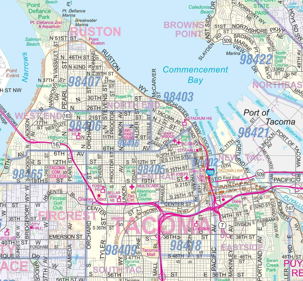 Seattle-Tacoma WA Detailed Region Wall Map 36"x54" w/Zip Codes Laminated [Map] Metro Maps